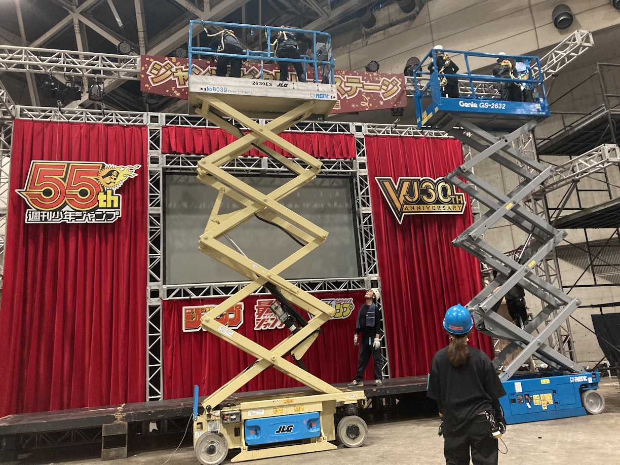 ジャンプの人気作品に関する様々なイベントが催された「ジャンプビクトリーカーニバル2023」設営中の様子(クライアント:株式会社集英社)