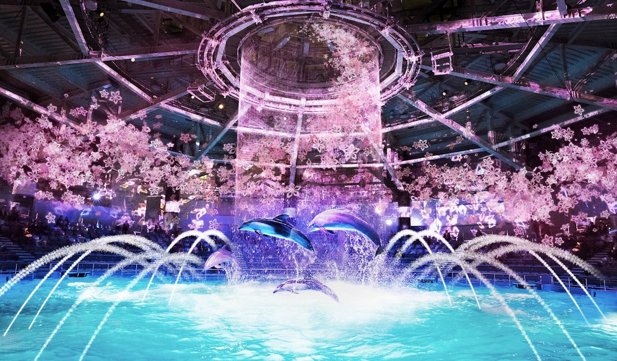 多彩なデジタルテクノロジー演出とイルカの躍動に胸が高鳴るナイトパフォーマンス「桜語り」