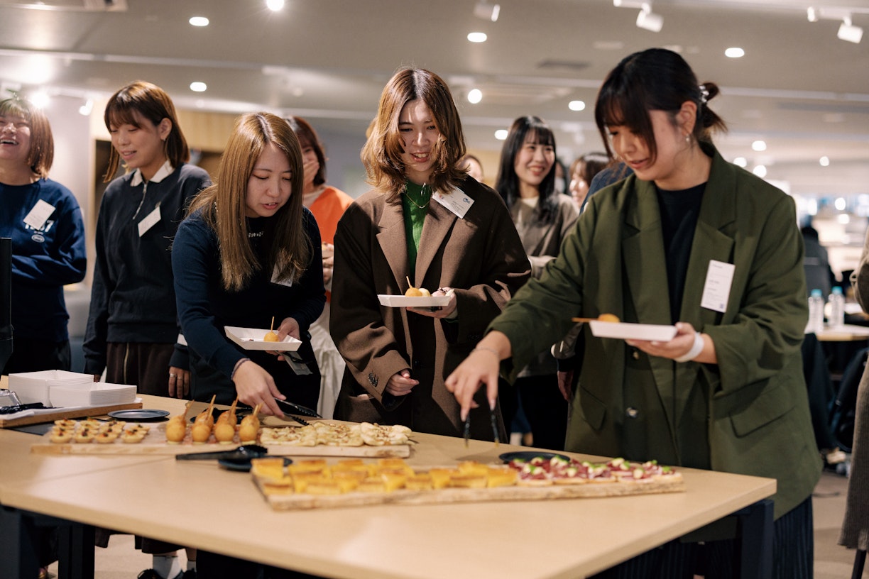 プログラムが終了したあとには、フィンガーフードとドリンクで懇親会を開催。心がほどけたのか、参加者たちが登壇者に相談したり、談笑したりと和やかな時間が流れました。
