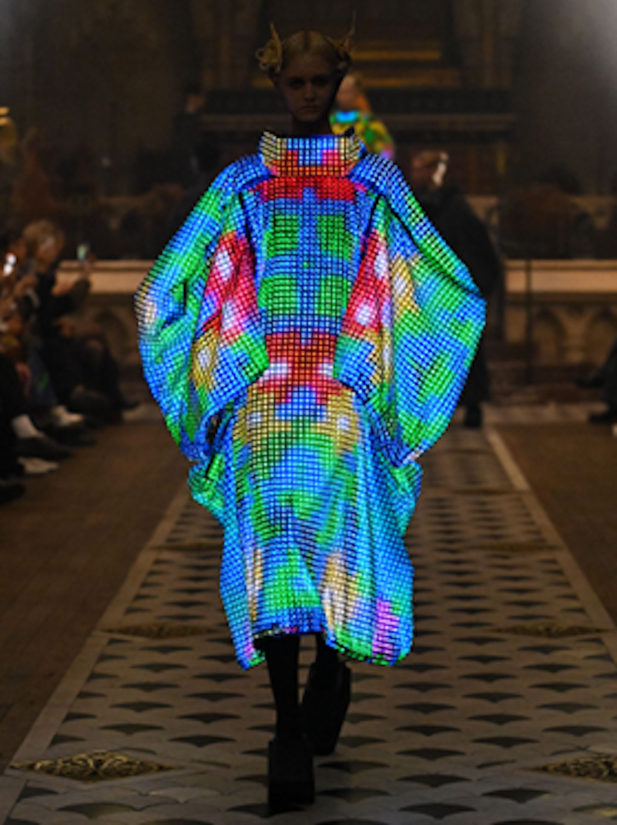 日本のファッションブランド「ANREALAGE」のパリコレに登場した光るドレス©Koji Hirano (提供:MPLUSPLUS)